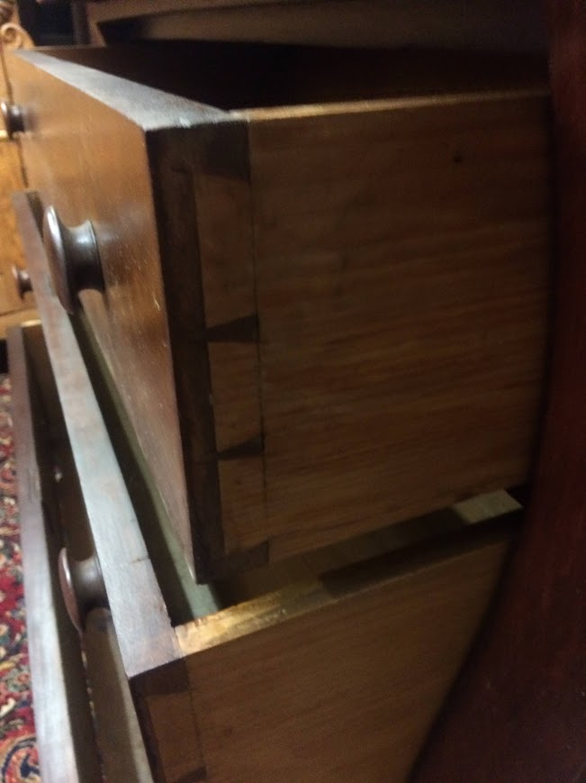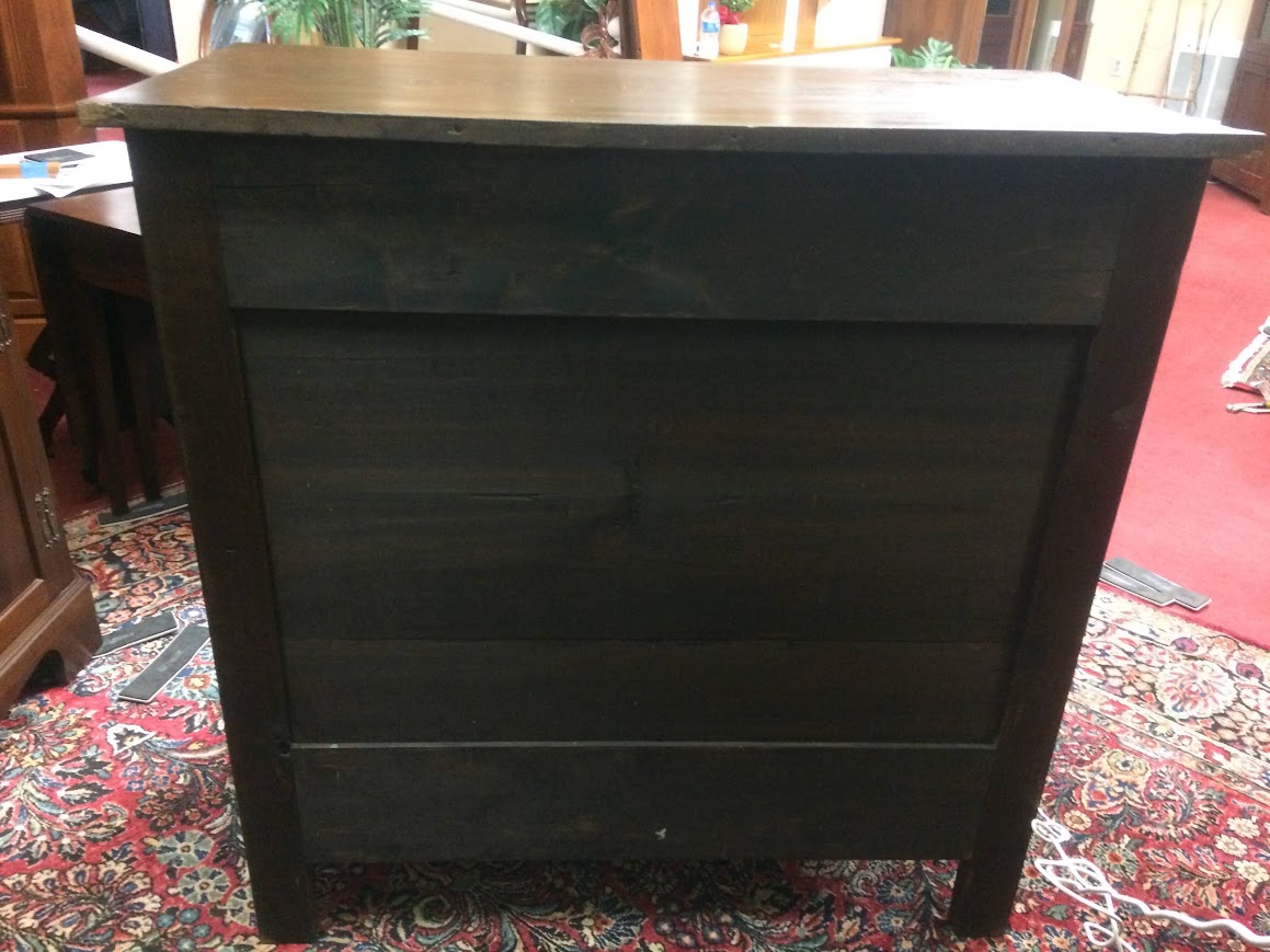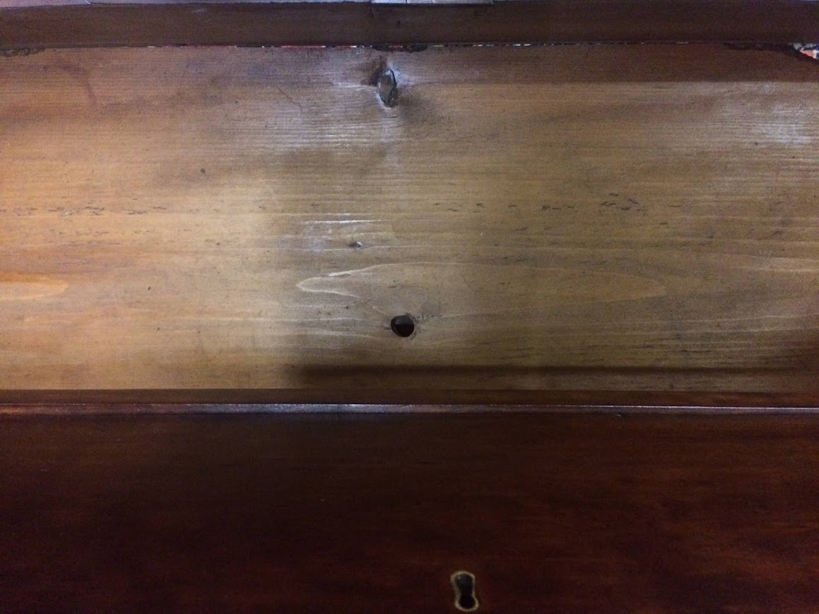 We refinished this chest of drawers in order to restore the lovely cherry wood. Inside the top drawer and bottom drawer, there are a couple of knot holes in the poplar wood. Please see photos.