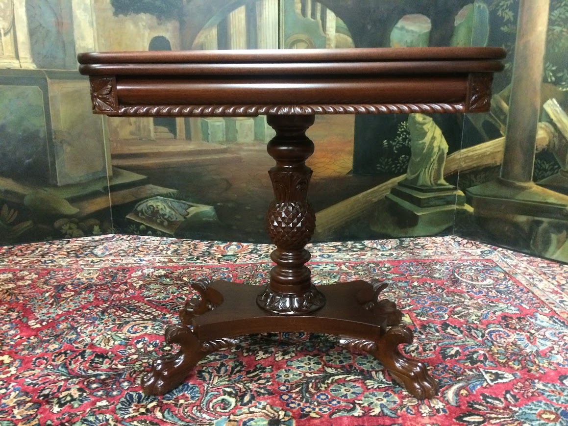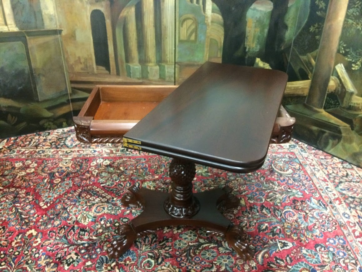Antique Games Table, Mahogany Card Table, Carved Empire Style Table