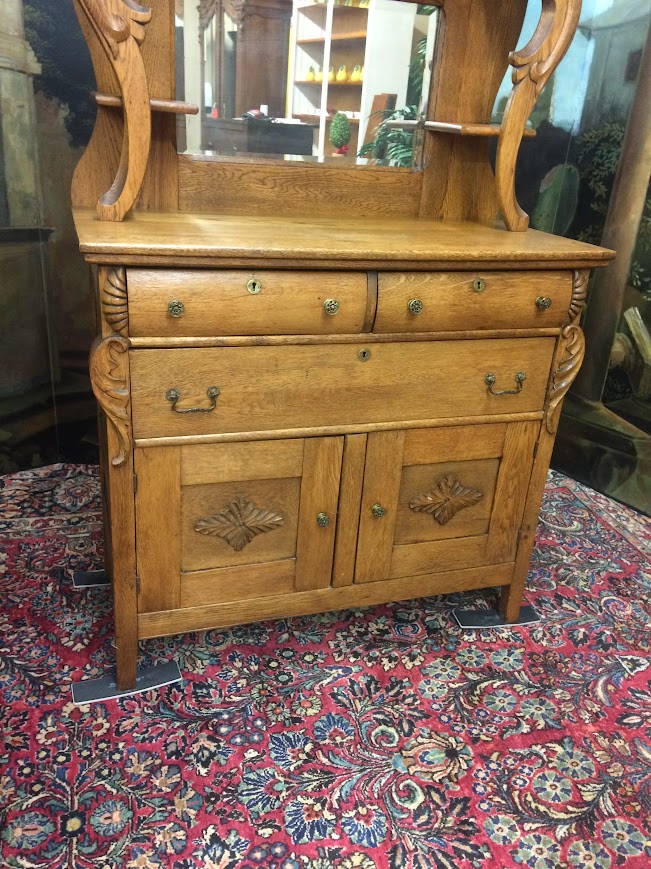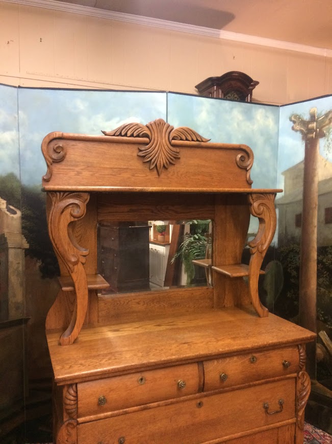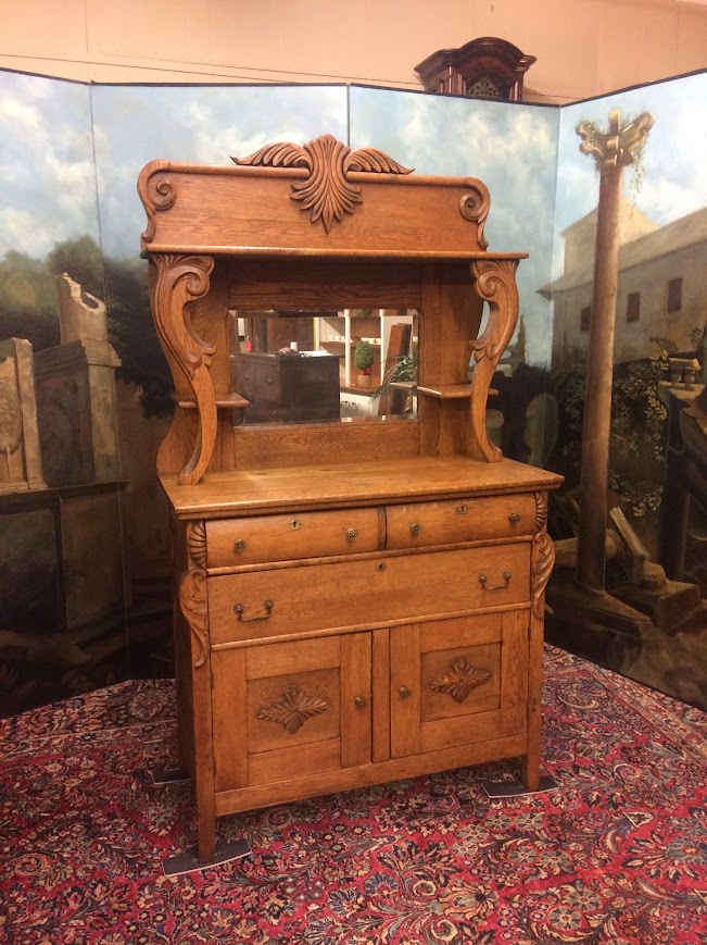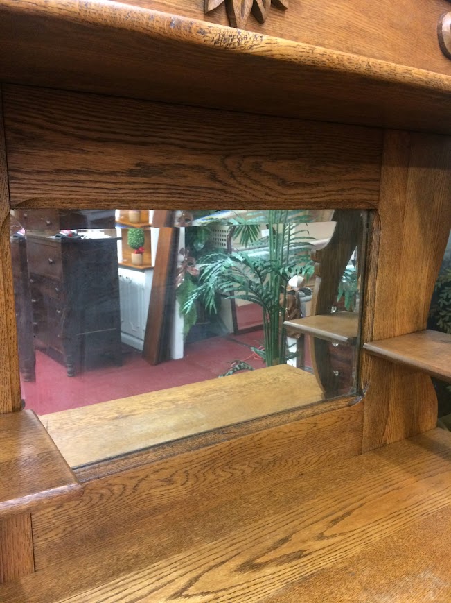 Antique Oak Sideboard with Mirrored Backsplash