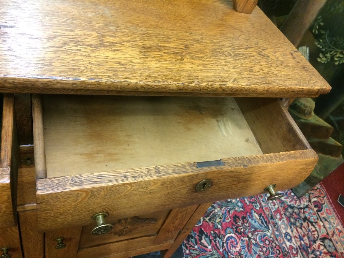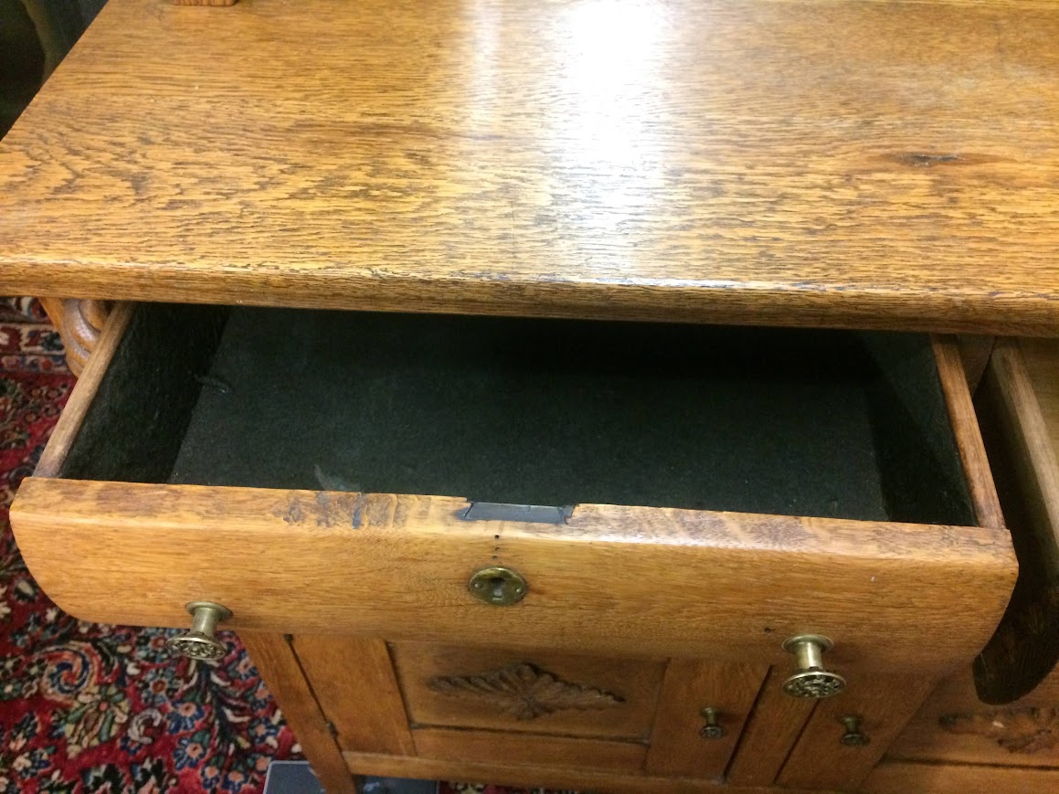 Overall, this sideboard shows well and has the original finish, which is a light oak. There are some light signs of age and use.