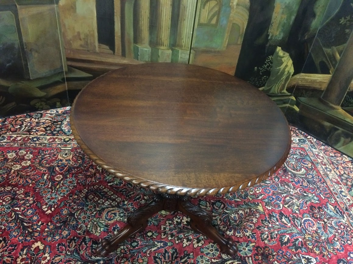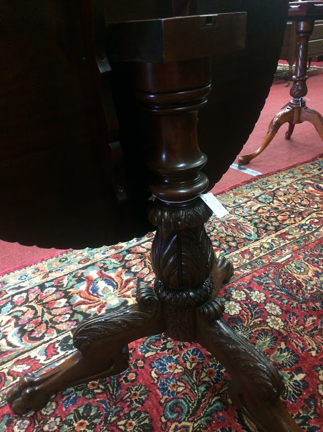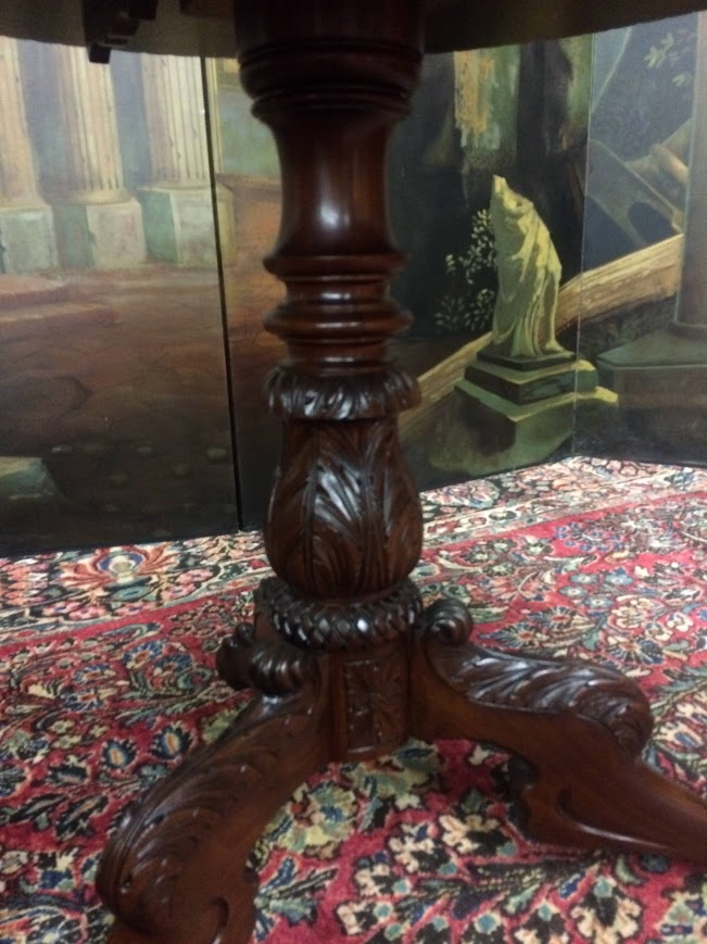 We refinished this mahogany empire table in order to restore the look of the beautiful mahogany wood.