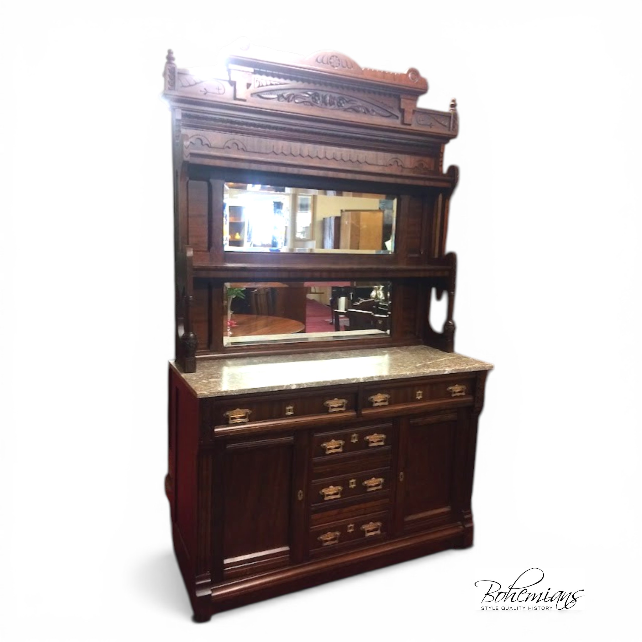 We refinished this marble top buffet. All parts appear to be original.