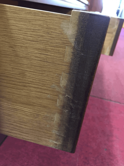 The table features a somewhat Oriental style frame. Also, it has a parquet style top. Of course, the table has a nice solid build and features three dovetailed drawers.