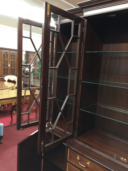On the bottom half of the cabinet, a nice mix of drawers and cabinet doors decorates the base. The lovely banding really offsets the mahogany grain beautifully!