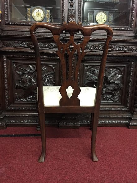 Very pretty carved back antique chair from circa 1900, carved in a Chinese Chippendale style. Very pretty and finely carved backsplat and legs.