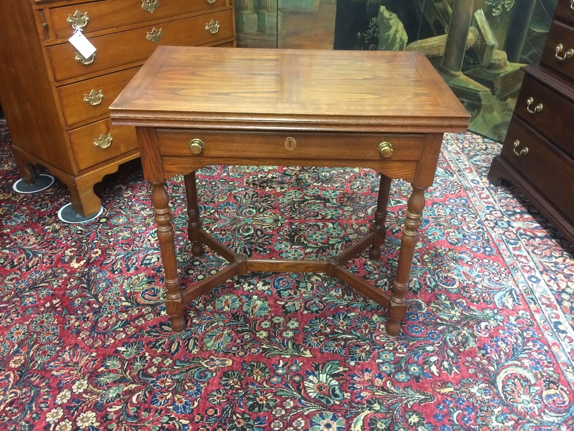 This nice Pennsylvania House Games table features one drawer and sits on tall oak William and Mary style legs. Of course, the legs also feature a crossed stretcher base that helps give the entire table stability.