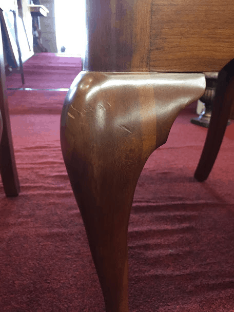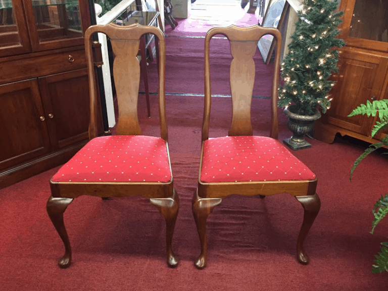 The chairs feature a simple back splat, Queen Anne leg and warm cherry color.