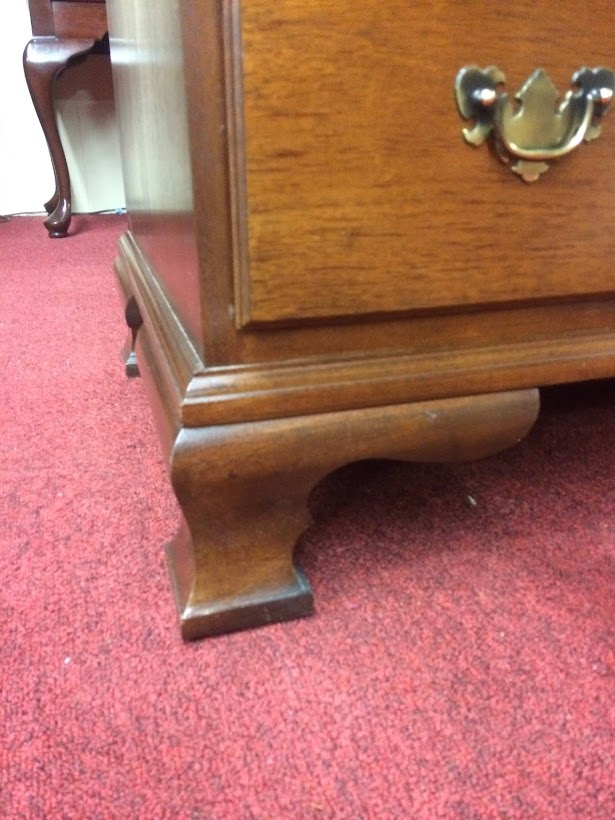 Unfortunately, the desk is missing a tag to identify the maker. However, we have sold this model of desk twice before. Therefore, we are fairly confident in attributing this mahogany desk to Craftique Furniture. Of course, Craftique Furniture hails from North Carolina and shows great quality.