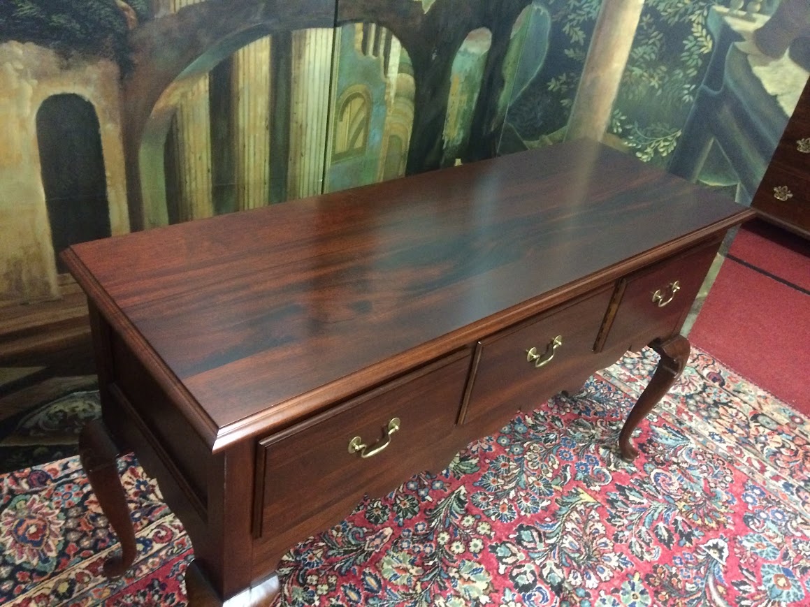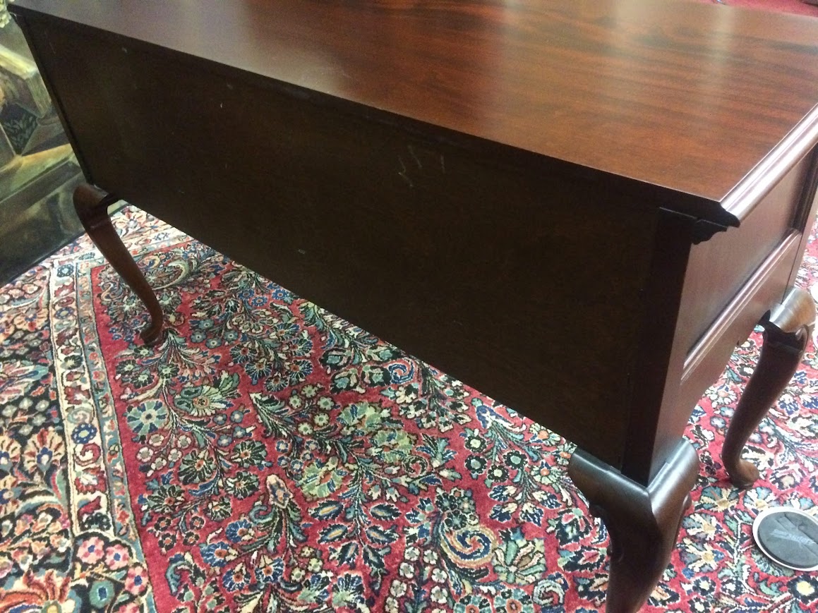 We refinished this Queen Anne server by Jamestown Sterling in order to restore the beautiful wood. It shows very well.