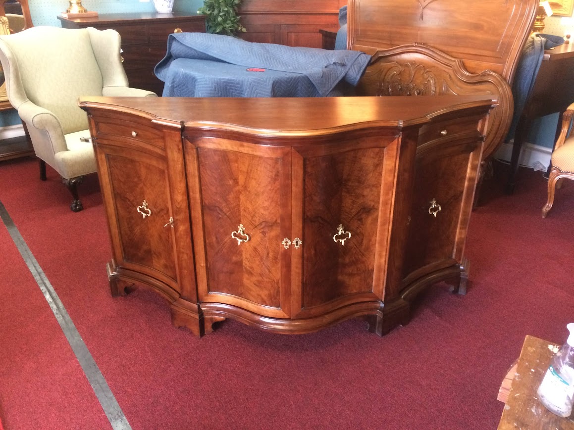 We refinished this lovely Baker Furniture credenza in order to restore the lovely burl walnut wood. It has a beautiful and elegant look.