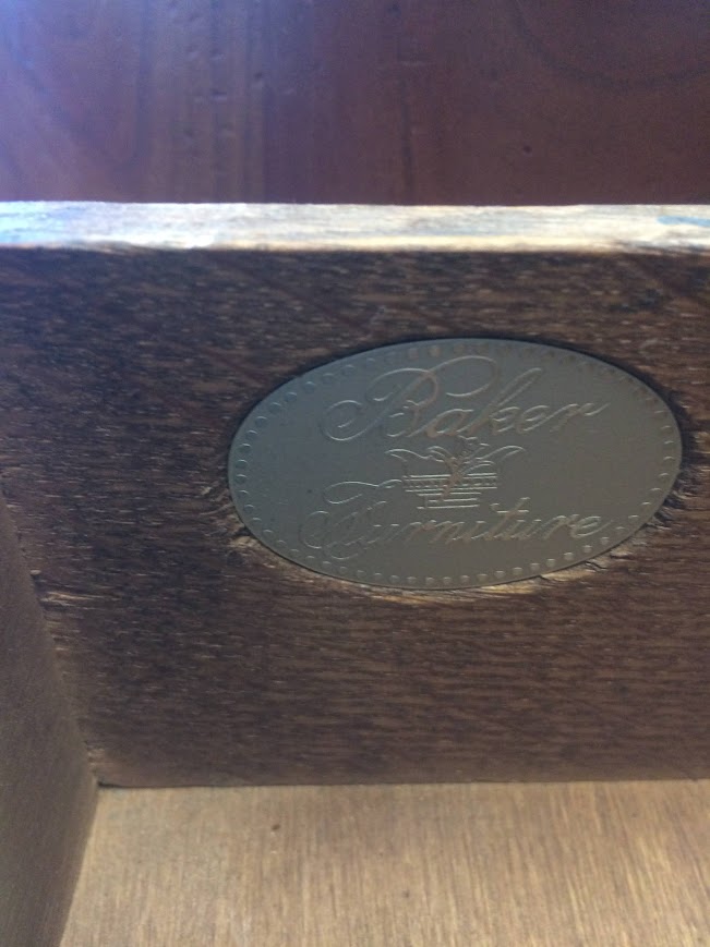Certainly, Baker Furniture is known for quality furniture. This server has a beautiful fitted interior with six serpentine front drawers. Additionally, there are fitted shelves on the outer sections.