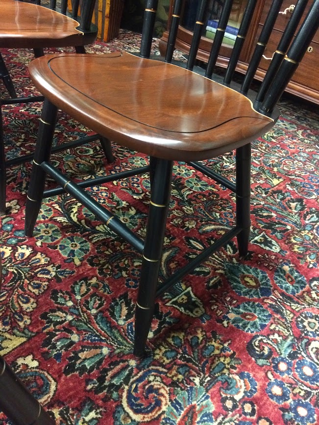 Beautiful vintage dining chairs by high end furniture company, Hitchcock Furniture Company. These lovely cherry wood chairs have a beautiful Colonial design!