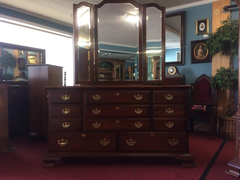 Beautiful vintage dresser with mirror in solid cherry wood. This nice eight drawer dresser has plenty of storage and has a great look!