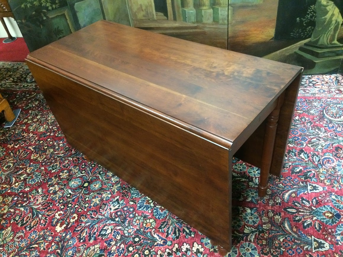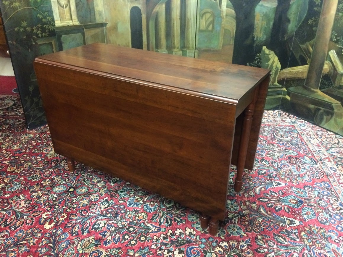 We refinished this cherry drop leaf table in order to restore the nice cherry wood. It shows well and has a great look.