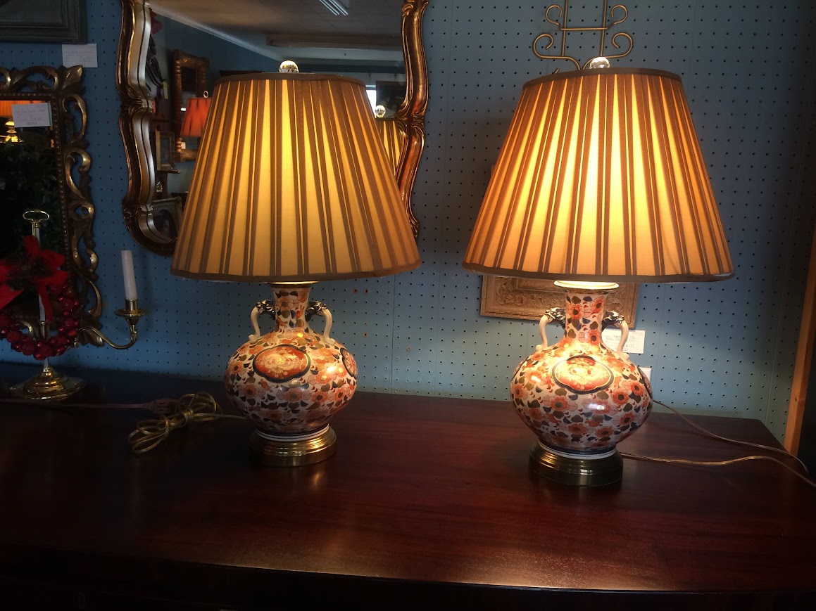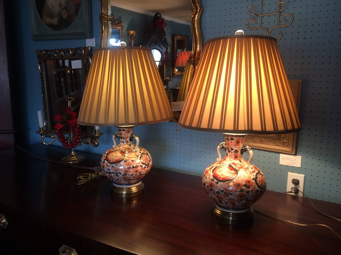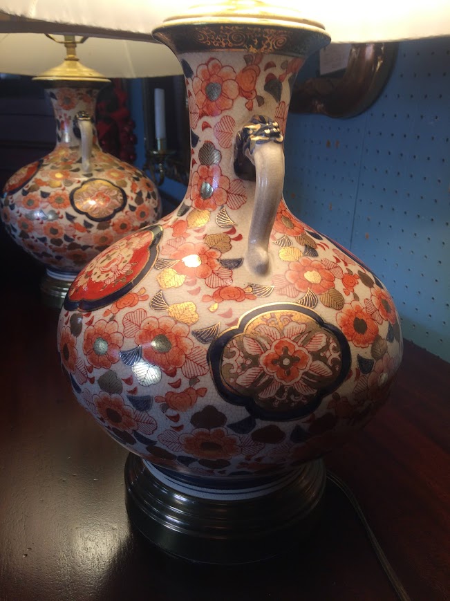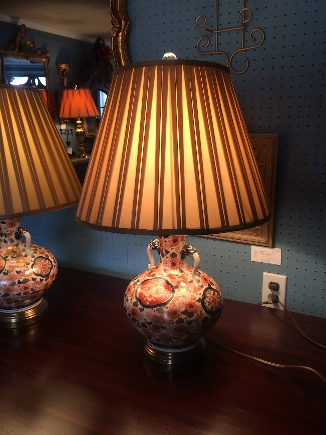 Vintage Imari Lamps, Three Way Lamps with Shades