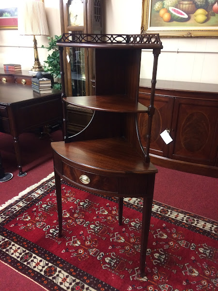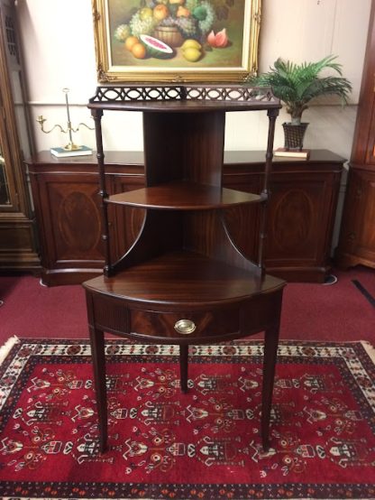 Vintage Mahogany Corner Shelf, made by Hagerstown Maryland Furniture company Brandt Furniture. This lovely corner stand has a beautiful traditional look.