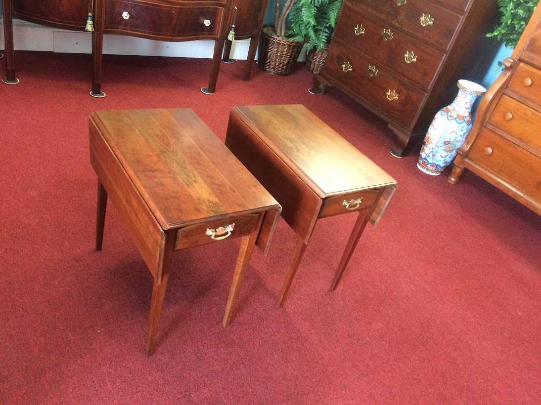 Nice vintaage Pembroke End Tables in solid cherry wood. These nice vintage end tables have a simple design and show good quality.