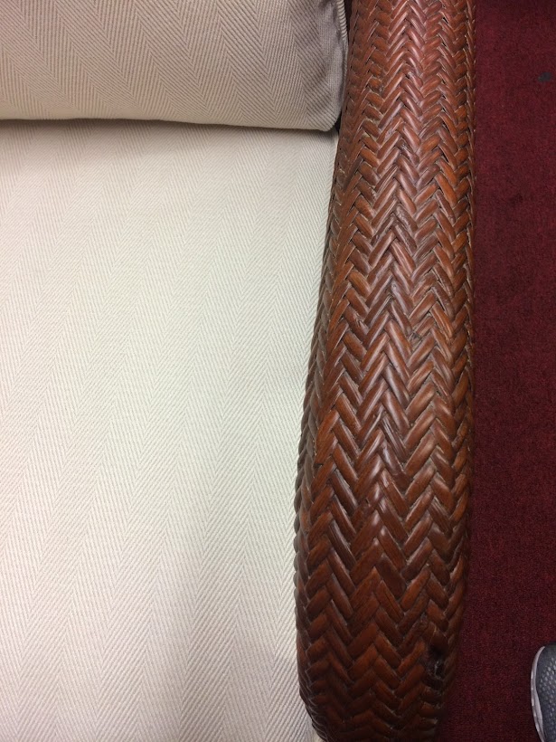 Of course the chairs feature great rolled arms. Also, they have a nice woven back and sides. Finally, they have really unique pineapple style carvings in the arms.