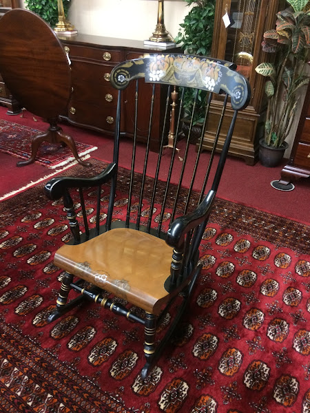 Of course, the Boston Rocker features a lovely stenciled back, and seat. Additionally, it has a black painted section and a wooden seat.
